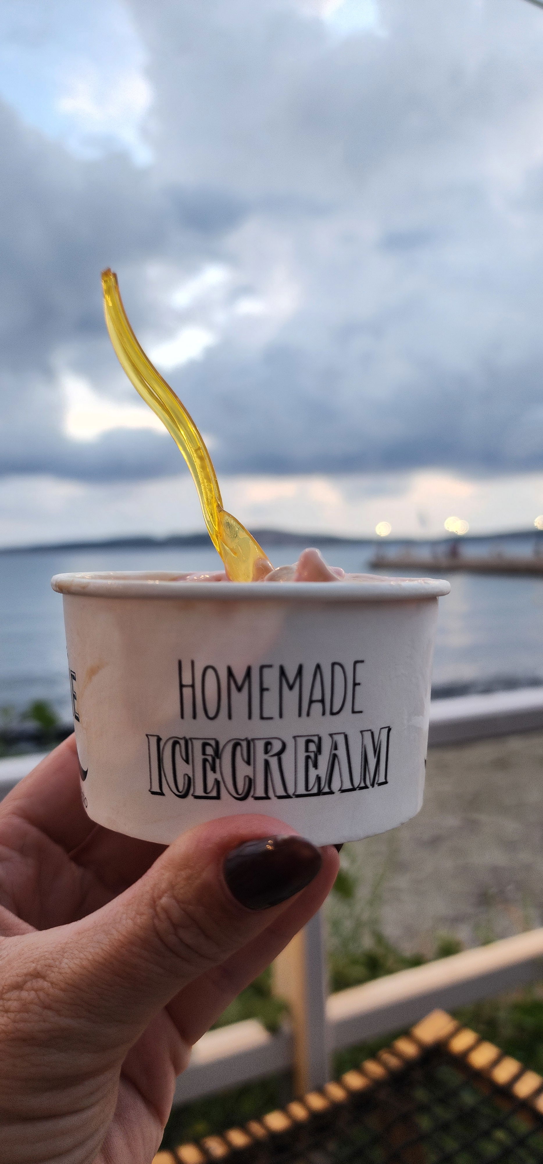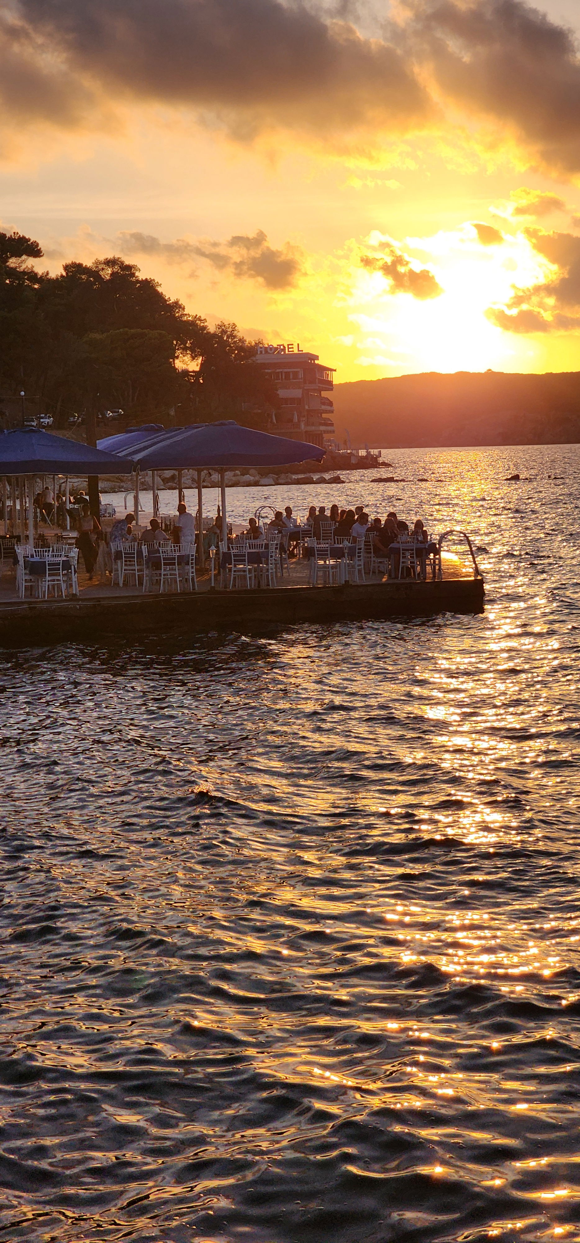 חנינו בחניון אפר חינמי שצמוד לחניון אספלט לא חינמי ופסענו ברגל לאורך הטיילת הקטנה הצמודה לחוף. עשרות טברנות, כמה חנויות מזכרות חמודות, כמה גלידריות וים ים ים בשקיעה. מה עוד אפשר לבקש?