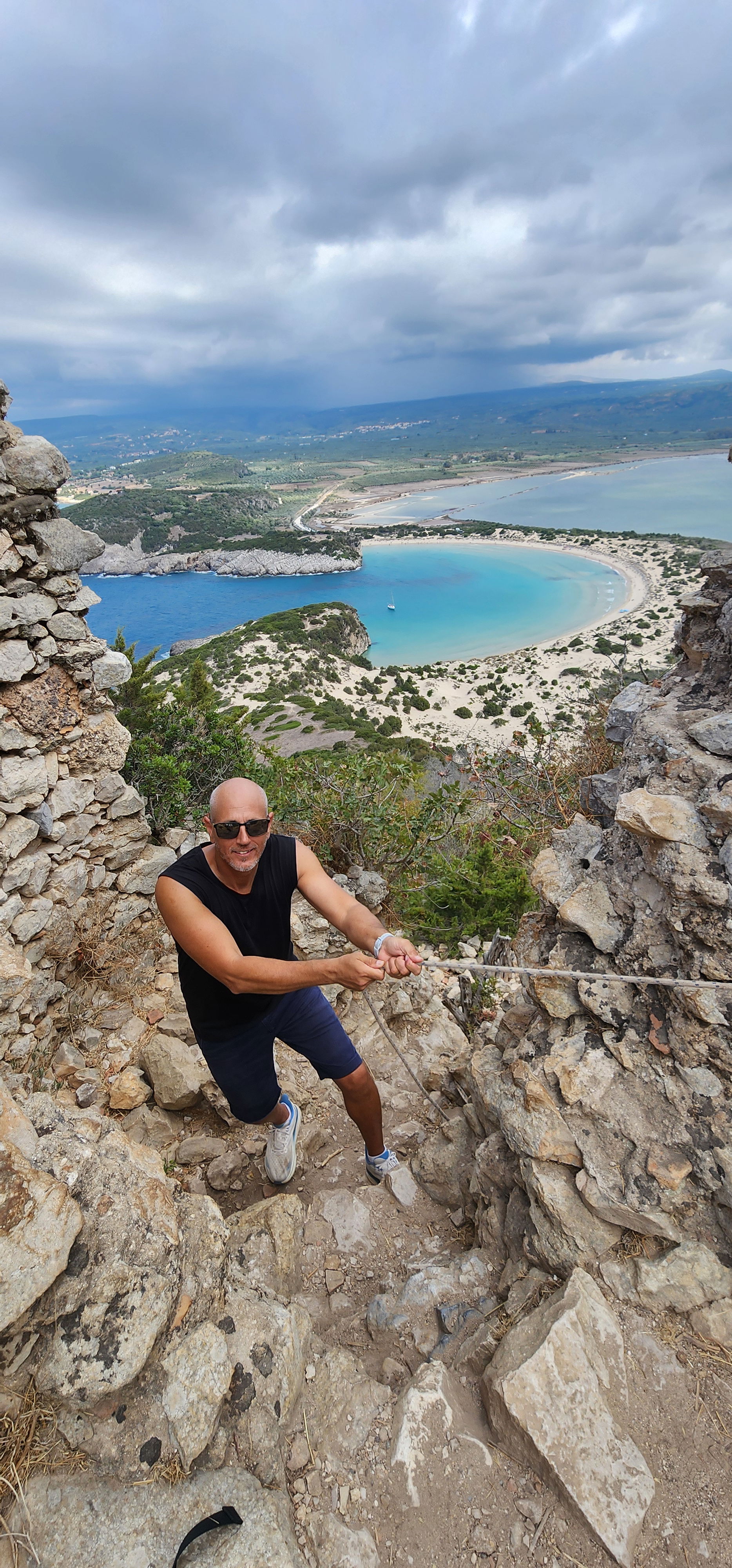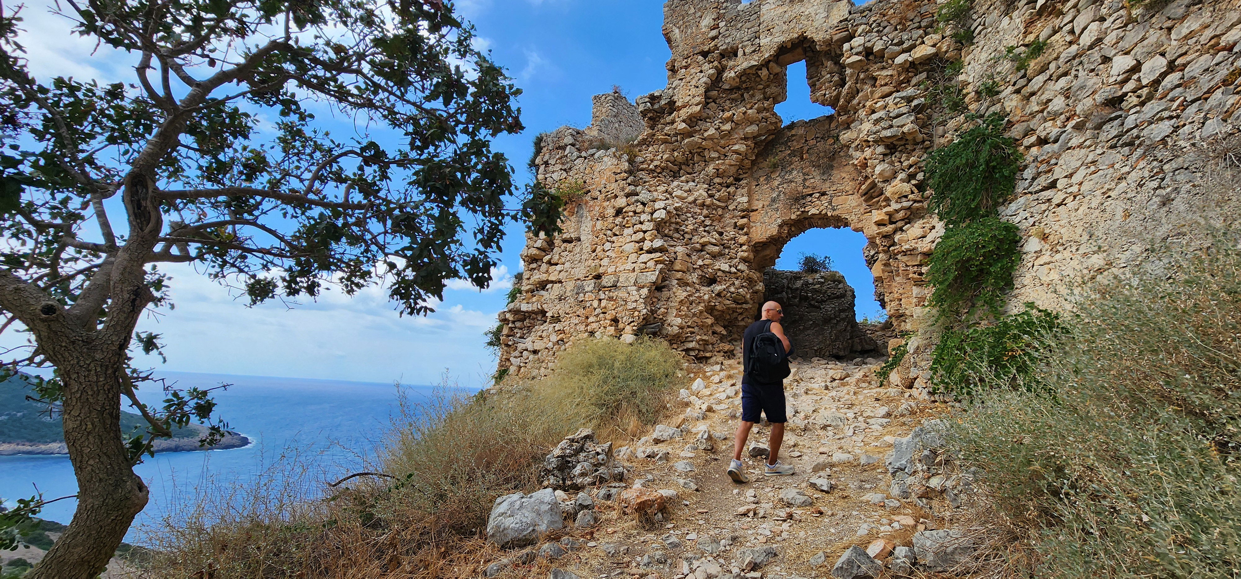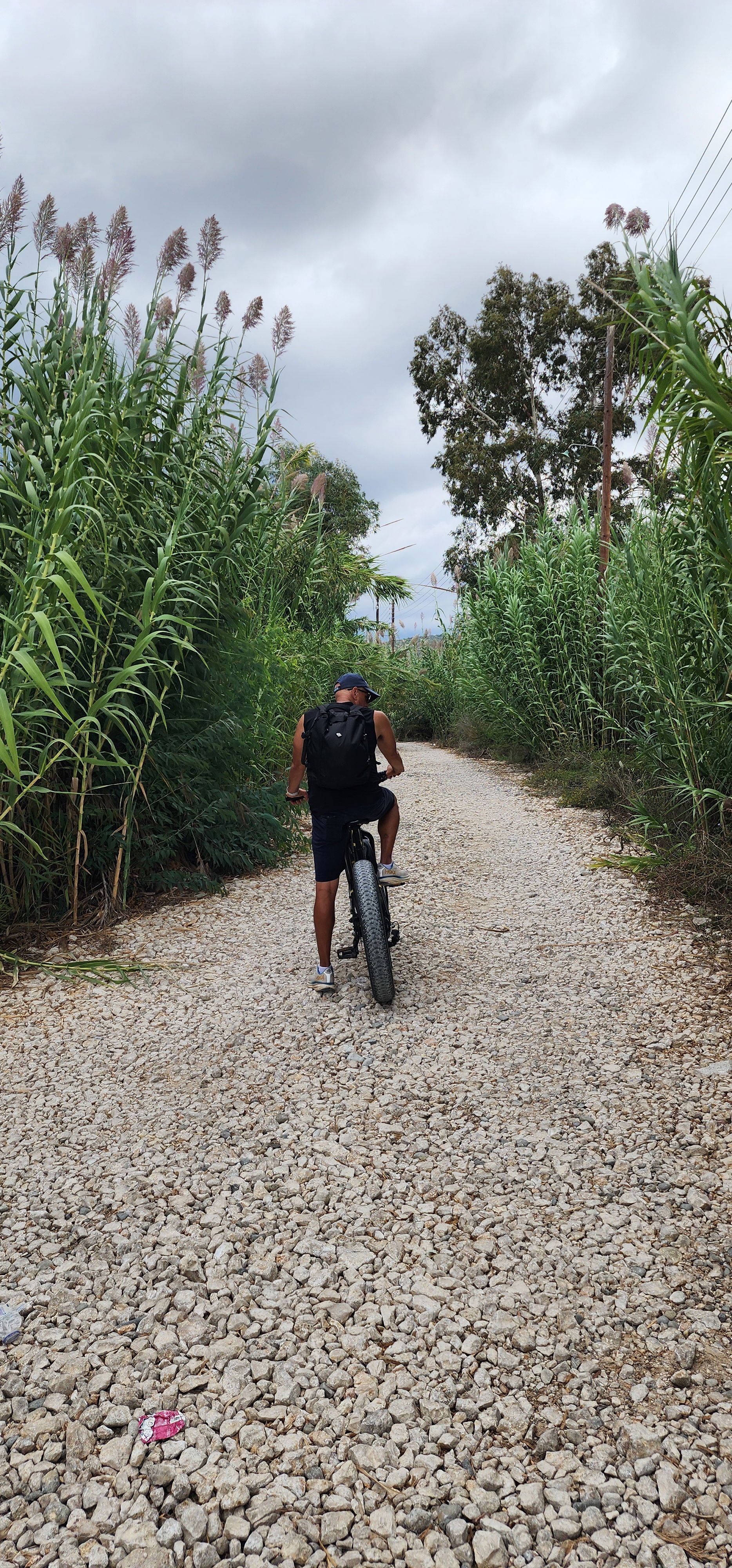 את התצפית שלי מעל מפרץ הפטריה אני כתבתי שאקבל, ולכן עם האופניים רכבנו לצידו השני של המפרץ. חנינו אותם בΠαραλία Πέρασμα Συκιάς עם מנעול שקיבלנו ומשם התחלנו לטפס בשביל המוביל ל
