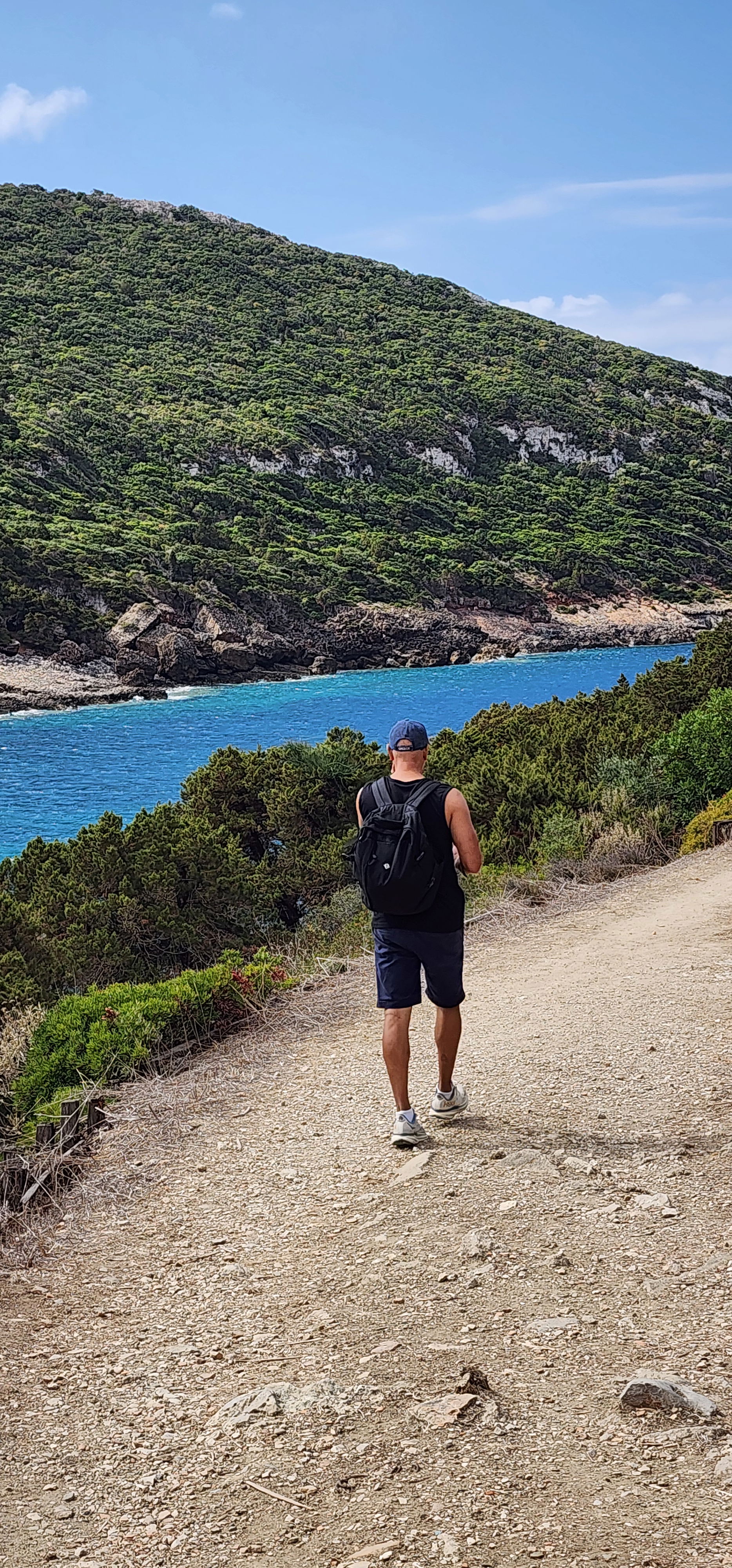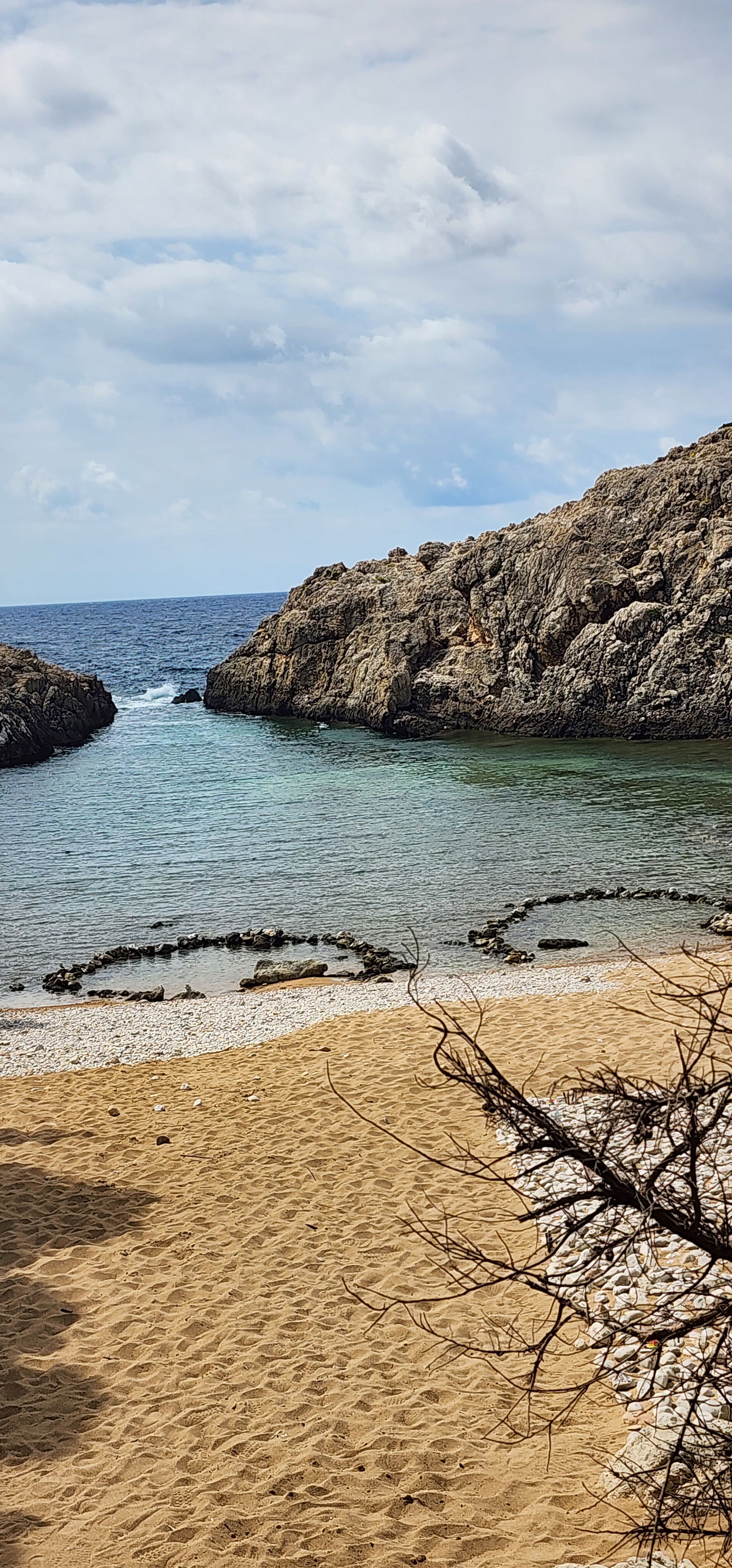 בהמלצת קוסטס, הפעם פנינו בגבעה בשביל לא מסומן ותוך פחות מחמש דקות הגענו לחוף קטנטן וסודי