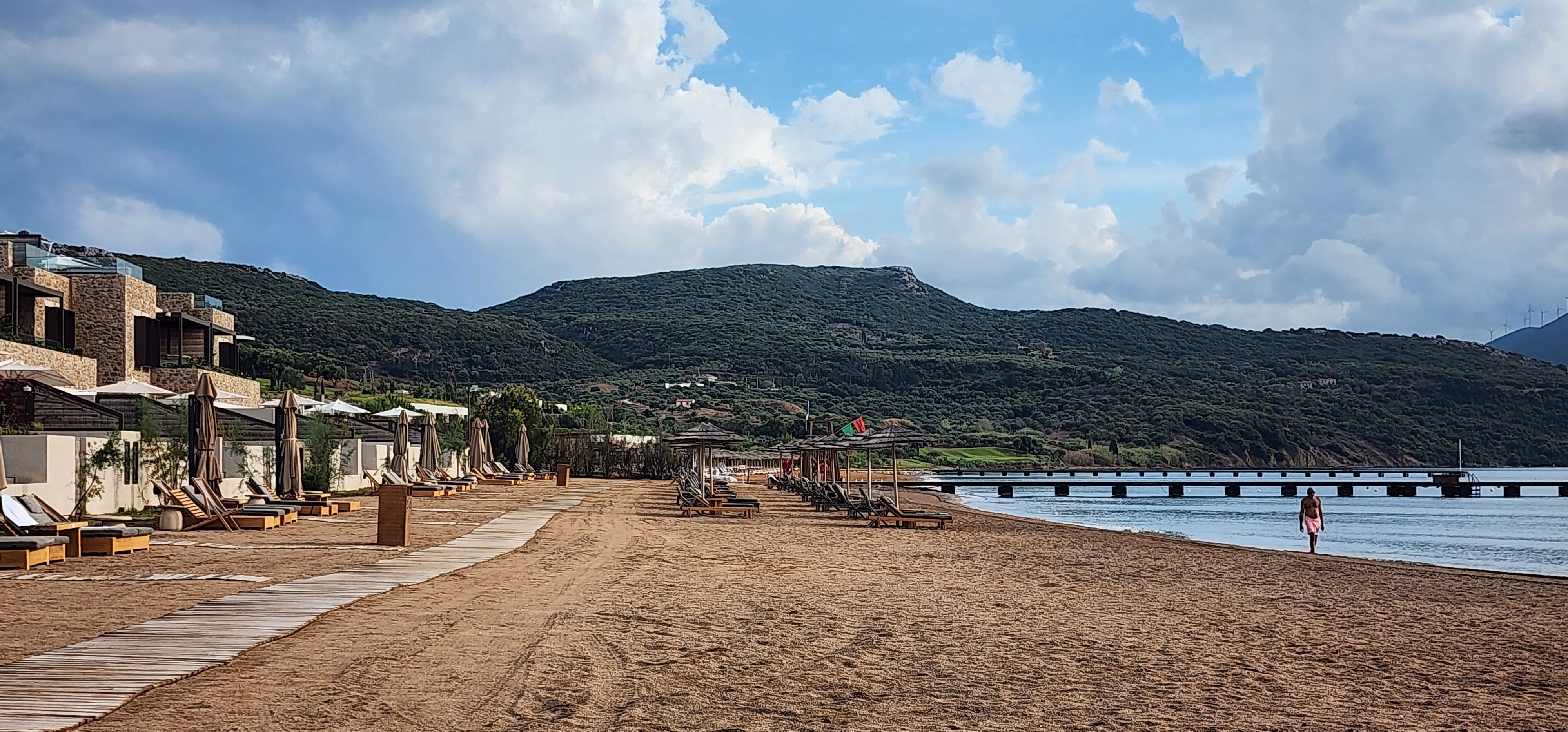 חוף יפה עם שמשיות, מיטות שיזוף, בר/מסעדה (שכבר היה סגור כשהגענו) והמון שקט ושלווה.