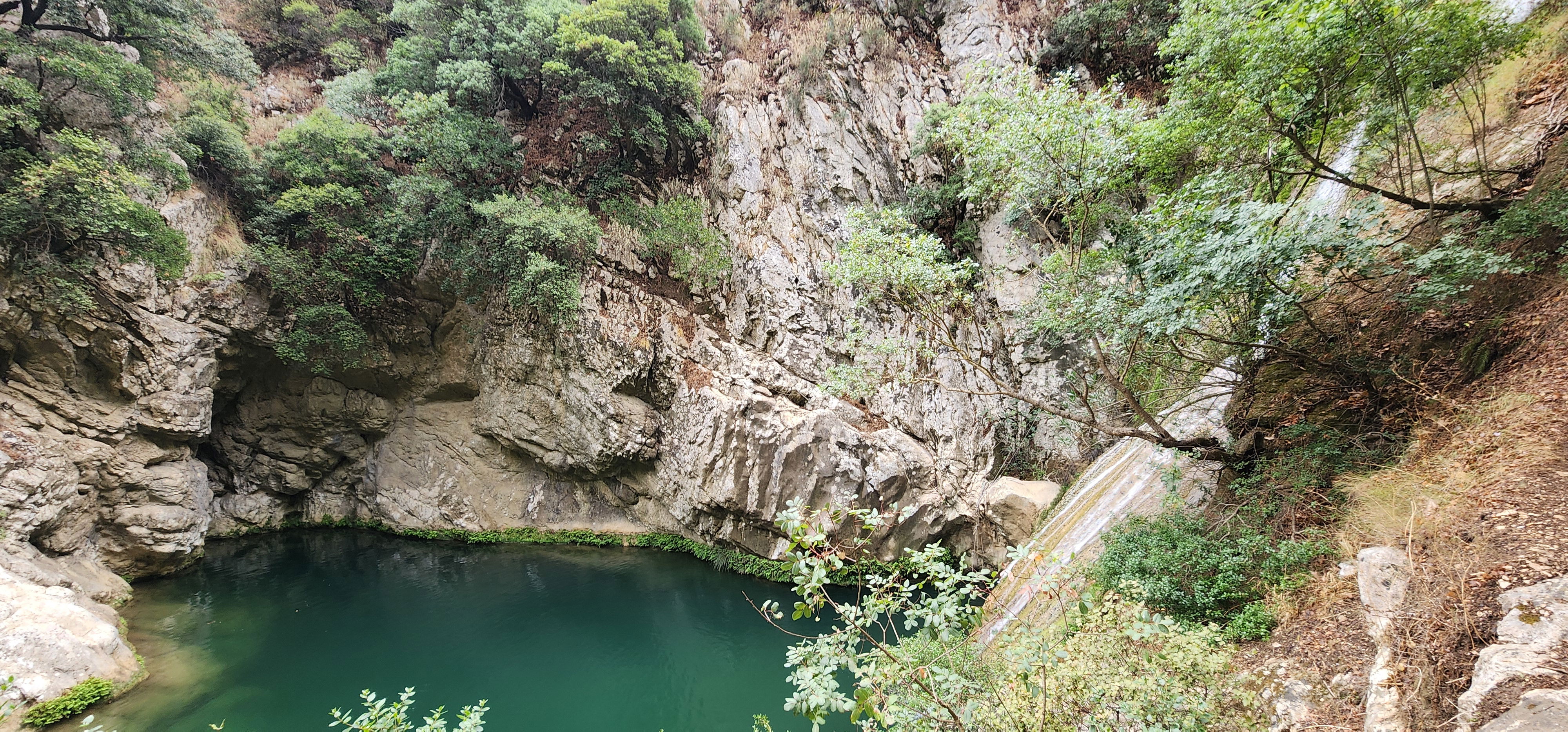 הייתי מאוד מתבאסת לעזוב את האזור והחופים שהגענו אליהם רק אמש, אבל הסתיו הגיע גם ליוון והבוקר היה מעונן עם טפטופים, אז התארגנו ואחרי ארוחת הבוקר נפרדנו בלב שלם והתחלנו לחזור לכיוון קלמטה. בדרך עצרנו לטיול במפלים